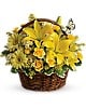 Wishes do come true, by the basketful, actually. This delightful arrangement is so full of sunny blossoms, it even includes two pretty yellow butterflies who obviously feel right at home, basking in the warmth.