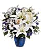 In this arrangement, the serenity of the color blue along with the purity of intention symbolized by white will let the family know you are sending your calm strength to them during these difficult times.