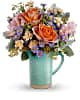 Ring in the spring with gorgeous garden blooms in an aqua-glazed stoneware pitcher--it's food safe for years of beverage pouring pleasure!