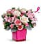 Make any moment magical with this breathtaking bevy of roses, presented to perfection in a hot pink glass cube that lives on as a cute candleholder. Send this featured bouquet and Teleflora will donate 15% of the purchase price to support the vital work of the Breast Cancer Research Foundation®.