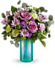 Like a fresh spring breeze, this soft lavender bouquet in an iridescent aqua glass vase invigorates the senses.