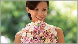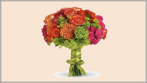 Orange flowers are perfect for fall ceremonies, and include peach or burnt-orange roses, dazzling dahlias and coral-hued gerberas. Ask for them in centerpieces, accented with tiny pumpkins and a curl of golden ribbon.